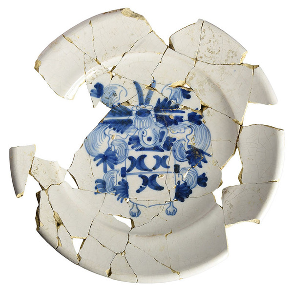 | 5c decoratie | beschilderd in blauw; spiegel: wapenschild met drie kruizen bekroond met helm en pluimen (wapen van Breda?) inwendig: blauw |