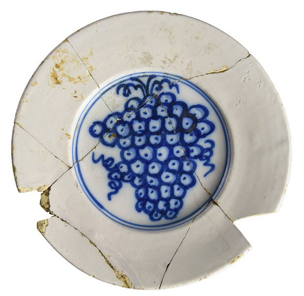 | 5c decoratie | beschilderd in blauw, spiegel: druiventros binnen twee concentrische cirkels blauw |