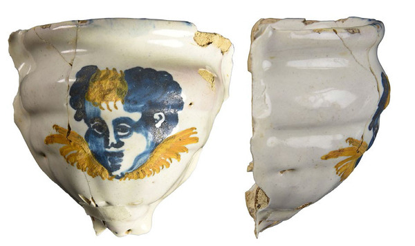 | 5c | beschilderd in blauw, geel en oranje: hoofd en vleugels van een putto polychroom |