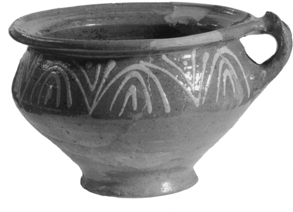 | 4b | bolle pispot met hoge schouder en geknikte rechte rand, standring |