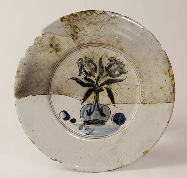 | 5c | spiegel: vaas met twee tulpen en twee appels? ernaast liggend blauw |