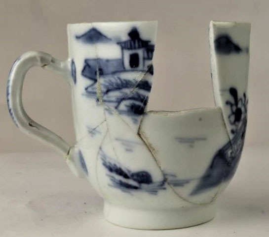 | 5c | uitwendig bloementuin; inwendig Chinees teken op bodem; deco onder lip onderglazuur blauw |