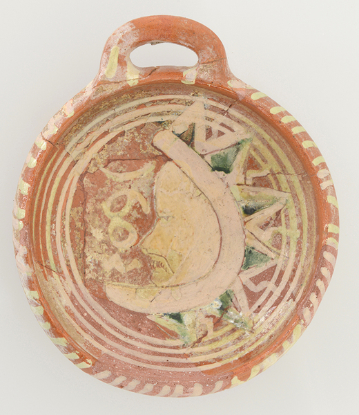 | 5c decoratie | ringeloorversiering en in slibkrastechniek: maan; groene accenten |