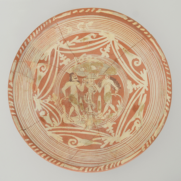 | 5c | ringeloorversiering en in slibkrastechniek: Adam en Eva, DCS. Decorateur I |