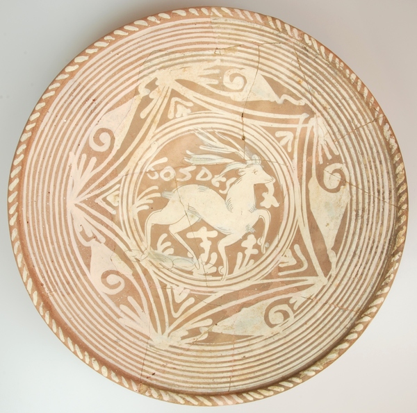 | 5c | ringeloorversiering, in slibkrastechniek: hert, DCS en jaartal 1605 |
