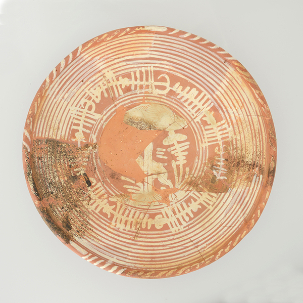 | 5c | ringeloorversiering, in slibkrastechniek: haas of hinde bij boom |