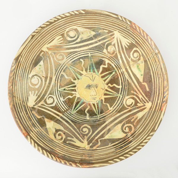 | 5c decoratie | ringeloorversiering, in slibkrastechniek: zon met 5 punten |