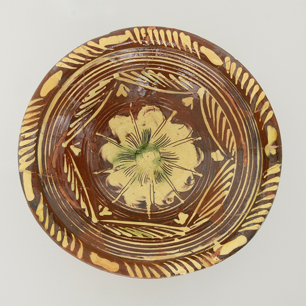 | 5c decoratie | ringeloorversiering, in slibkrastechniek: bolderik |