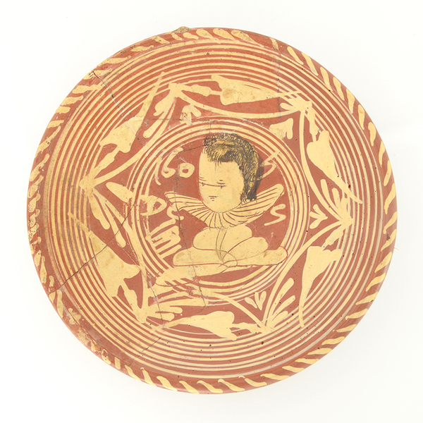 | 5c | ringeloorversiering, in slibkrastechniek: kop, decorateur IV; DCS en jaartal 1605 |