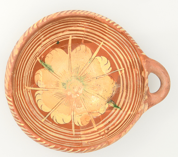 | 5c decoratie | slibversiering, in slibkrastechniek: bolderik |