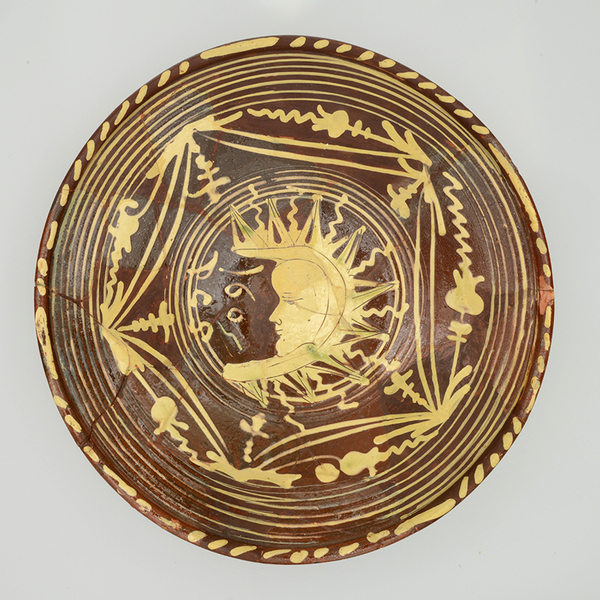 | 5c decoratie | slibversiering, in slibkrastechniek: 9-puntige maan, DCS en jaartal 1605 |