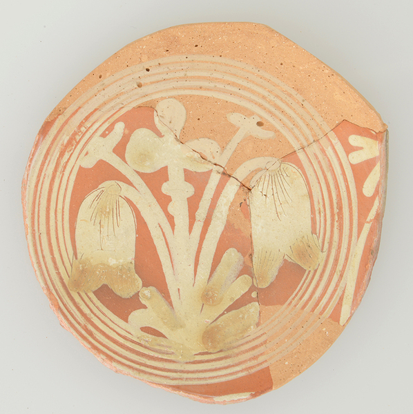 | 5c decoratie | slibversiering, in slibkrastechniek: 2 tulpen |