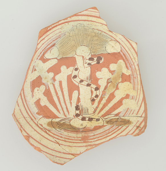 | 5c decoratie | slibversiering, in slibkrastechniek: slang |