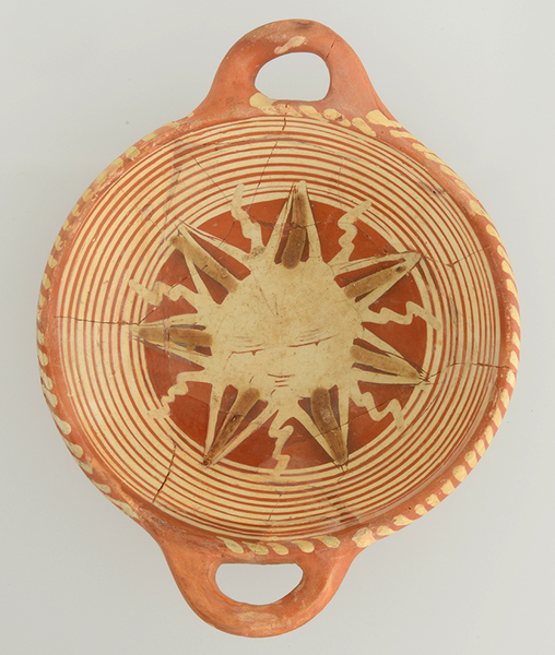 | 5c decoratie | slibversiering, in slibkrastechniek: 7-puntige zon |