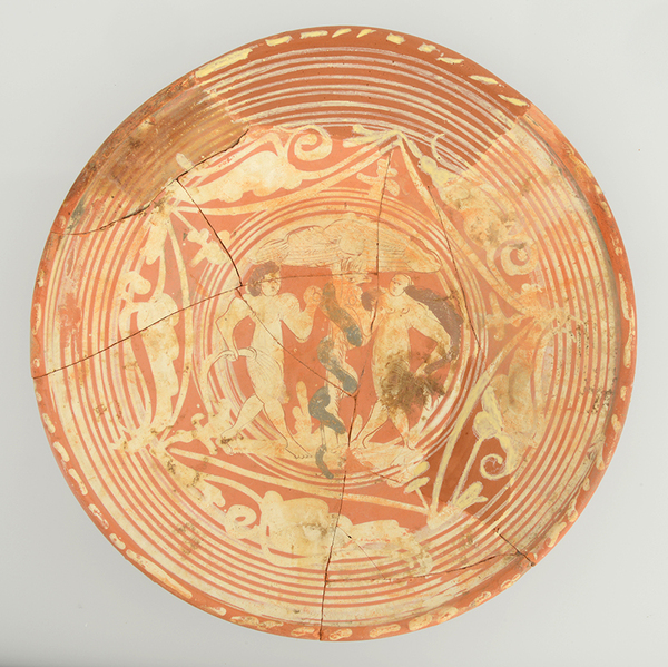 | 5c decoratie | slibversiering, in slibkrastechniek: Adam en Eva |