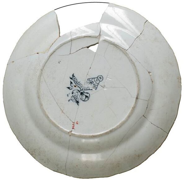 | 5d diversen | merkstempel een ruit met aan de bovenzijde een bolletje met in de verschillende vlakjes: IV, V, H, Rd, 25, 3 en in banderol met strik Clematis en R F Co, blindmerk 9426 |