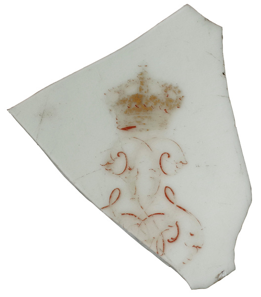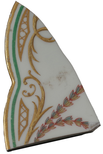 | 5c | APPL4 V388-23a rand van ontbijtbord met guirlande en ophogsel in goud APPL4 V388-23b fragment van een spiegel met gouden kroon vergulding |