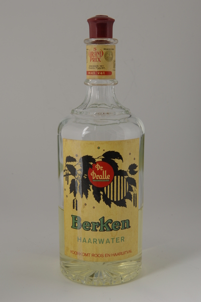 | 5c | op schouder in reliëf: DRALLE, op bodem in reliëf: veelpuntige ster met daarover echthoekig tekstvlak (onleesbaar), Dr. Dralle Berken haarwater (etiket ontbreekt), parfumeriefabriek Lotus te Schiedam |