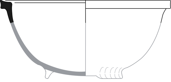 | 4b vorm | bolle kom met afgeronde brede rand, aan bovenzijde ingedrukt, lobvoeten |