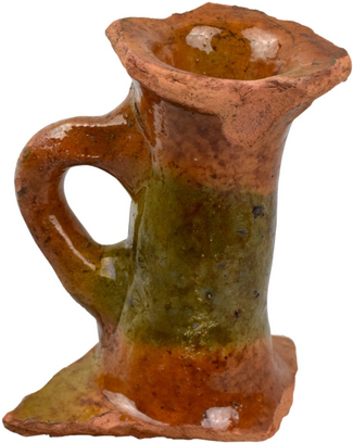 | 5d | diam. stam 2,9 cm; inwendig krassen in kaarshouders, groene vlek op stam t.h.v. oor (koperoxide) |