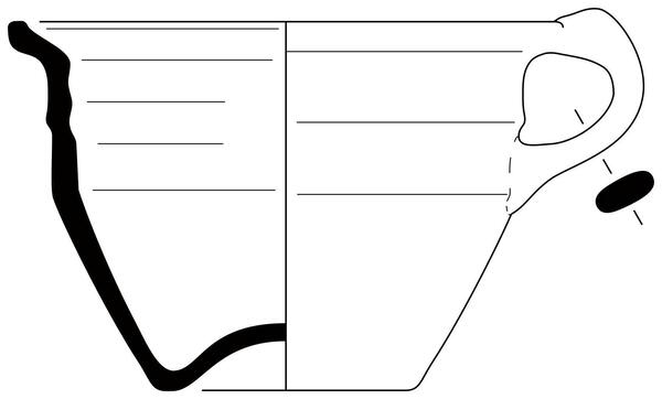 | 4b | hoge, biconische pot met afgeronde buikknik en ribbel of groef op schouder, geknikte uitstaande rand, holle bodem |