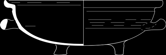| 4b vorm | grote ronde test/ kooltjespan met knik bodem-wand, naar buiten geknikte rand aan de buitenzijde afgeplat, poten |