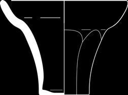 | 4b vorm | taps vogelbakje met afgeplatte achterzijde en schuin ver uitstaande rand |