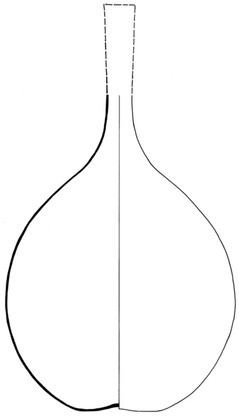 | 4b | bolvormige fles met tweezijdig sterk afgeplatte buik, lange rechte hals, platte of licht opgebolde bodem |