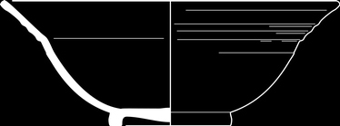 | 4b | bolle kom met naar buiten geknikte brede platte rand (vlag), standring |