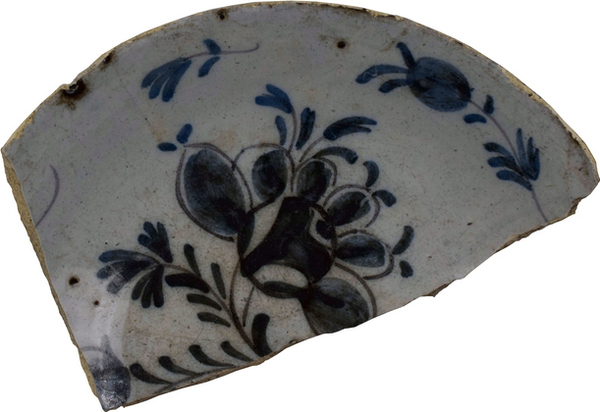| 5c decoratie | inwendig kobaltblauwe bladeren en bloem, mangaanpaarse takken en bloemomtrek polychroom |