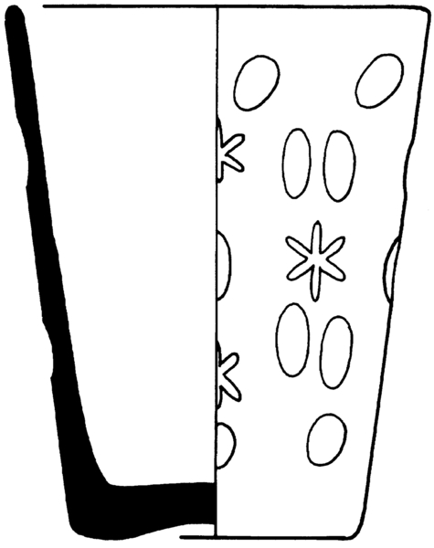 | 4b | dikwandige conische beker, ook met radgravure, verdikte bodem, standvlak met (eventueel weggeslepen) pontilmerk |