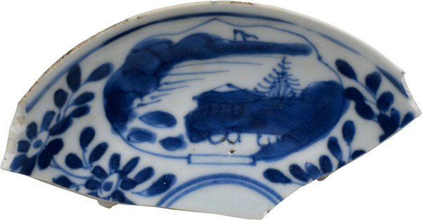 | 5c | inwendig kobaltblauw: landschap met huis tussen florale decoratie onderglazuur blauw |