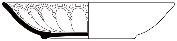 | 4b | diep bord met uitgebogen rand met reliëfversiering en verdiepte spiegel, standring |