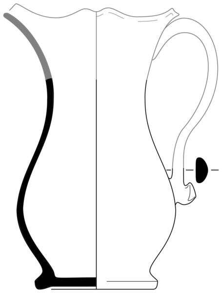 | 4b | peervormige kan met uitgebogen brede rand, rand in model gesneden, standvoet |