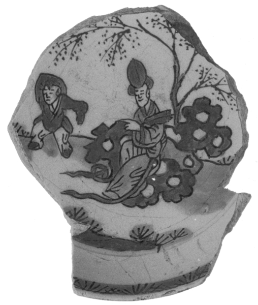| 5c | spiegel: zotje met Chinese dame in tuin inwendig blauw |
