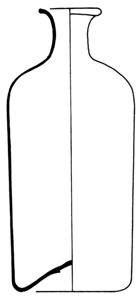 | 4b | cilindrische medicijnfles zonder- of met korte hals met uitstaande lip, opgestoken bodem met pontilmerk |