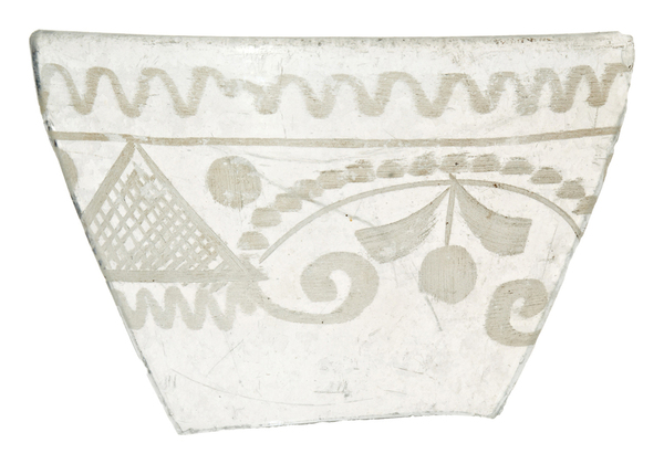 | 5c decoratie | radgravure: gestileerde florale- en geometrische motieven |