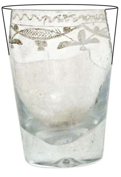 | 4b vorm | dikwandige conische beker, ook met radgravure, verdikte bodem, standvlak met (eventueel weggeslepen) pontilmerk |