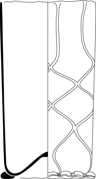 | 4b vorm | cilindrische beker met netwerkpatroon in reliëf, opgestoken bodem met pontilmerk, voetring |