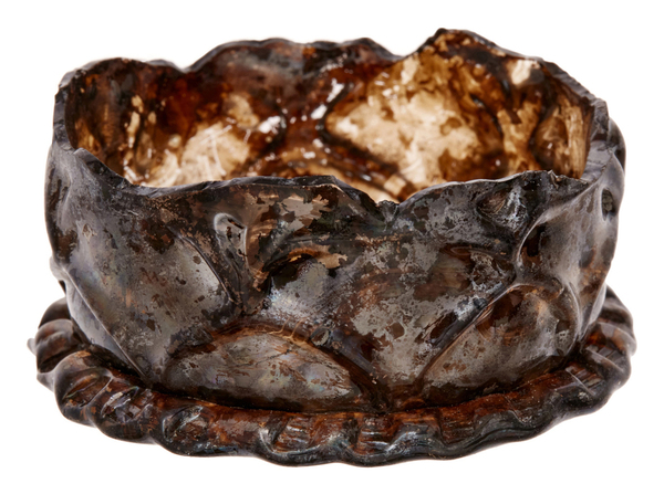 | 4b | cilindrische beker met netwerkpatroon in reliëf, opgestoken bodem met pontilmerk, voetring |