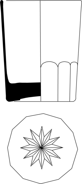 | 4b | dikwandige cilindrische of licht conische beker met verticale afgeronde vlakken, standvlak of standring |
