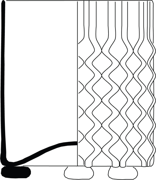 | 4b | cilindrische beker met (of deels met) netwerkpatroon in reliëf, opgestoken bodem met pontilmerk, met of zonder noppootjes |