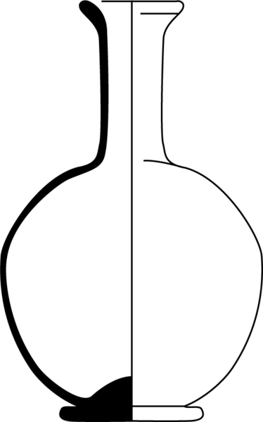 | 4b | kleine bolvormige fles met lange hals en uitstaande, verdikte of omgeslagen lip, op standvoet |