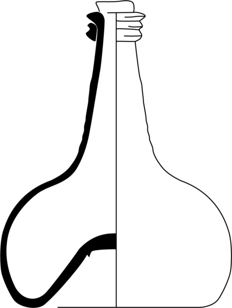 | 4b | bolvormige wijnfles met een uitgezakte buik (uivormig) en een conische hals met een afgeplatte lip, conisch opgestoken bodem met pontilmerk |