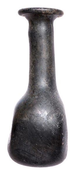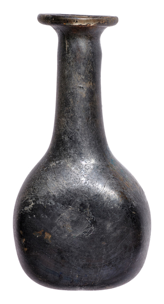 | 4b | kleine bolvormige tweezijdig afgeplatte parfumfles met lange hals en uitstaande of omgeslagen lip, met pontilmerk |