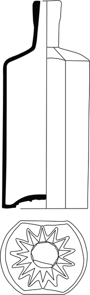 | 4b | parfumfles met twee platte- en twee afgeronde zijden, licht conische hals, contactvorm met naden, ook tekst in reliëf, standring of standvlak |
