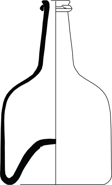 | 4b vorm | korte brede cilindrische wijnfles met V-vormige draad om de lip, hoog opgestoken bodem met pontilmerk |