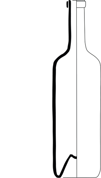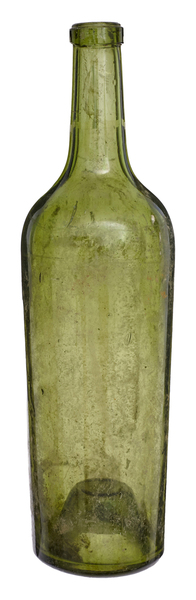| 4b vorm | slanke cilindrische wijnfles met lange hals, afgeronde schouder, lip verdikt met afgewerkte brede platte draad, vormgeblazen, opgebolde bodem |
