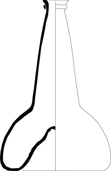 | 4b vorm | bolvormige wijnfles met lange conische hals en uitgezakte buik met grootste breedte aan de basis, conisch opgestoken bodem met pontilmerk |