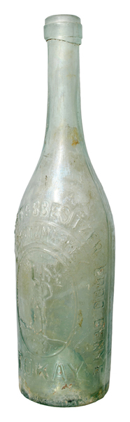 | 4b vorm | cilindrische fles met afhangende schouderen smalle lange hals, afgewerkte lip met platte draad, ook met tekst in reliëf Tokay |